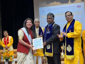 खबरेंNcr रिपोर्टेर पंकज अरोड़ा फरीदाबाद: 10 नवंबर, लिंग्याज विद्यापीठ (डीम्ड टू बी यूनिवर्सिटी) में 12वां दीक्षांत समारोह आयोजित हुआ। इस समारोह में राजस्थान टेक्नीकल यूनिवर्सिटी, कोटा से प्रोफेसर एसके सिंह बतौर मुख्य अतिथि मौजूद रहे। इस दौरान चांसलर डॉ पिचेश्वर गड्ढे, प्रो चांसलर डॉ एम के सोनी, रेजिस्ट्रार प्रेम कुमार सालवान, डायरेक्टर भाविक कुचीपुडी, एकेडमीक डीन प्रो डॉ सीमा बुशरा, लिंग्याज ललीता देवी इंस्टीट्यूट ऑफ मैनेजमेंट एंड साइंस से डायरेक्टर प्रणव मिश्रा, डॉ के के गर्ग भी विशेष रूप से उपस्थित रहे। दीक्षांत समारोह में अपने संबंधित कार्यक्रमों में सफल छात्रों को 2253 डिग्री, डिप्लोमा और प्रमाण पत्र प्रदान किए। साथ ही मेधावी विद्यार्थियों को स्वर्ण पदक भी प्रदान किये गये।