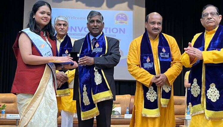 खबरेंNcr रिपोर्टेर पंकज अरोड़ा फरीदाबाद: 10 नवंबर, लिंग्याज विद्यापीठ (डीम्ड टू बी यूनिवर्सिटी) में 12वां दीक्षांत समारोह आयोजित हुआ। इस समारोह में राजस्थान टेक्नीकल यूनिवर्सिटी, कोटा से प्रोफेसर एसके सिंह बतौर मुख्य अतिथि मौजूद रहे। इस दौरान चांसलर डॉ पिचेश्वर गड्ढे, प्रो चांसलर डॉ एम के सोनी, रेजिस्ट्रार प्रेम कुमार सालवान, डायरेक्टर भाविक कुचीपुडी, एकेडमीक डीन प्रो डॉ सीमा बुशरा, लिंग्याज ललीता देवी इंस्टीट्यूट ऑफ मैनेजमेंट एंड साइंस से डायरेक्टर प्रणव मिश्रा, डॉ के के गर्ग भी विशेष रूप से उपस्थित रहे। दीक्षांत समारोह में अपने संबंधित कार्यक्रमों में सफल छात्रों को 2253 डिग्री, डिप्लोमा और प्रमाण पत्र प्रदान किए। साथ ही मेधावी विद्यार्थियों को स्वर्ण पदक भी प्रदान किये गये।