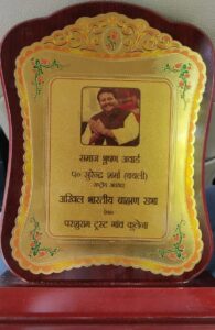 पं अजीत शर्मा ने कहा पण्डित सुरेन्द्र बबली ने सामाजिक धार्मिक पर्यावरण खेल के क्षेत्र मे जो अतुल्यनिय योगदान प्रदान किया है उसके लिए समाज भूषण अवार्ड से सम्मानित करते हुए गर्व महसूस हो रहा पण्डित सुरेन्द्र शर्मा बबली ने पहले तो सभी को भगवान परशुराम जी जन्मोत्सव की बधाई दी भगवान परशुराम के चरणों मे वन्दन पुष्प अर्पित किए और कहा इस सम्मान के लिए गांव कुलेना की सरदारी मन्दिर ट्रस्ट का सहृदय आभार सदैव जनमानस की सेवा मे समर्पित रहूंगा।