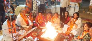 सर्वप्रथम ईश्वरस्तुतिप्रार्थना उपासना के वैदिक मत्रों से नव संवत्सर मंगलमय हो इसकी प्रार्थना की गई । तत्पश्चात स्वस्तिवाचन के मंत्र से सारे जगत के कल्याण के कामना की गई। इसके बाद वेद मंत्रों से सब लोगों ने आहुति प्रदान की ।