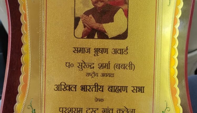 पं अजीत शर्मा ने कहा पण्डित सुरेन्द्र बबली ने सामाजिक धार्मिक पर्यावरण खेल के क्षेत्र मे जो अतुल्यनिय योगदान प्रदान किया है उसके लिए समाज भूषण अवार्ड से सम्मानित करते हुए गर्व महसूस हो रहा पण्डित सुरेन्द्र शर्मा बबली ने पहले तो सभी को भगवान परशुराम जी जन्मोत्सव की बधाई दी भगवान परशुराम के चरणों मे वन्दन पुष्प अर्पित किए और कहा इस सम्मान के लिए गांव कुलेना की सरदारी मन्दिर ट्रस्ट का सहृदय आभार सदैव जनमानस की सेवा मे समर्पित रहूंगा।
