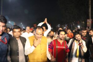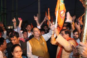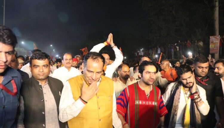 पंकज अरोड़ा की रिपोर्ट/फरीदाबाद: 10 नवंबर, हरियाणा भाजपा के प्रदेश अध्यक्ष पंडित मोहन लाल बडौली बागेश्वर धाम के पीठाधीश्वर धीरेंद्र कृष्ण शास्त्री द्वारा निकाली जा रही सनातन हिंदू एकता पदयात्रा में शामिल हुए। भाजपा प्रदेश अध्यक्ष बड़ौली बल्लभगढ़ में पदयात्रा के दौरान धीरेन्द्र शास्त्री का हाथ पकड़कर काफी दूर तक चले। इस दौरान धीरेन्द्र शास्त्री और पंडित मोहनलाल बडौली के साथ सैकडों सनातनी हाथों में भगवा ध्वज लेकर सनातन समर्थन में जय जयकार का उदघोष करते रहे। भाजपा के वरिष्ठ नेता संदीप जोशी भी इस दौरान साथ रहे।