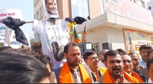 कांग्रेस द्वारा AI समिट में देश की छवि धूमिल करने के विरोध में भाजयूमो ने राहुल गांधी का किया पुतला दहन