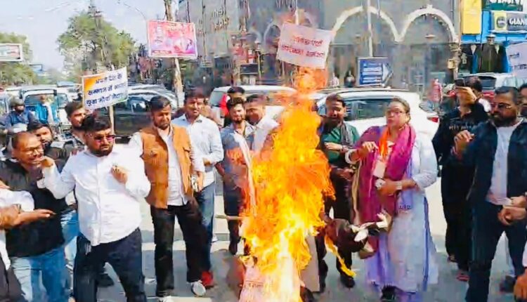 कांग्रेस द्वारा AI समिट में देश की छवि धूमिल करने के विरोध में भाजयूमो ने राहुल गांधी का किया पुतला दहन