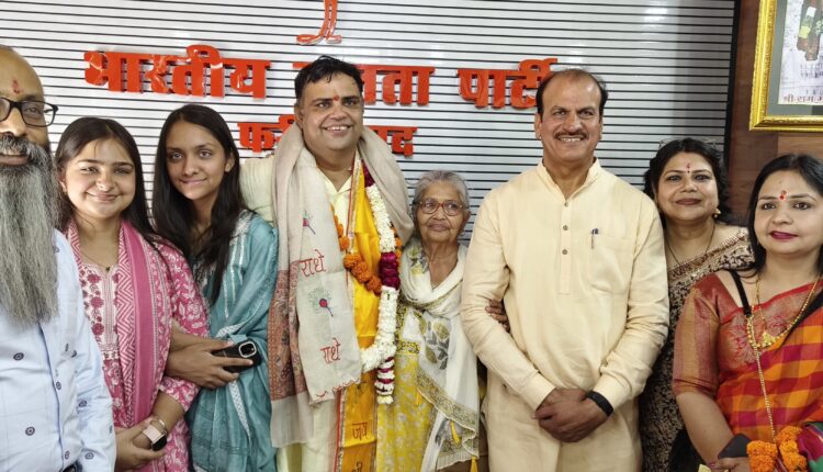 पंकज अरोड़ा की रिपोर्ट फरीदाबाद 30 मार्च, फरीदाबाद के नवनियुक्त जिला अध्यक्ष पंकज रामपाल की नियुक्ति से कार्यकर्ताओं में जोश और उत्साह है वहीं पंकज रामपाल के परिवार में भी खुशी का माहौल है। कार्यकर्ताओं के साथ-साथ परिवार के लोगों ने भी जिला अध्यक्ष का पदभार ग्रहण करने पर पंकज रामपाल को बधाई और शुभकामनायें दी। पदभार संभालने से पहले पंकज रामपाल ने अपनी माता के चरण छू कर आशीर्वाद लिया और अपने स्वर्गीय पिता को स्मरण किया । पंकज रामपाल के भाजपा जिला अध्यक्ष बनने पर उनके परिवार और आस पास के लोगों ने भी ढोल नगाड़ों पर खुशी जाहिर की और मिठाईयां बांटकर सभी का मुंह मीठा कराया।