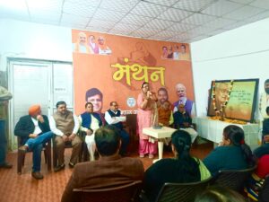 अटल बिहारी वाजपेयी जी की जन्म शताब्दी के उपलक्ष्य में सागर सिनेमा स्थित कार्यालय में ‘मंथन’ सभा का आयोजन भी किया गया। इस सभा का आयोजन विपुल गोयल द्वारा किया गया, लेकिन व्यस्तताओं के चलते वह उपस्थित नहीं हो सके। कार्यक्रम में पूर्व मंत्री और भाजपा नेत्री सीमा त्रिखा ने अटल जी के विचारों और उनकी नीतियों पर विचार-विमर्श किया। उनके अतिरिक्त कार्यक्रम में अशोक गोयल, दादर जिला उपाध्यक्ष वजीर सिंह, भाजपा जिला सचिव मुकेश अग्रवाल, मंडल अध्यक्ष नीरज मित्तल, मंडल अध्यक्ष सचिन शर्मा, मंडल अध्यक्ष कुलदीप सिंह साहनी, गायासी राम, पुनीता झा, प्रवीण चौधरी, गौरव चौहान, जाजू ठाकुर सहित अन्य गणमान्य जन उपस्थित थें।