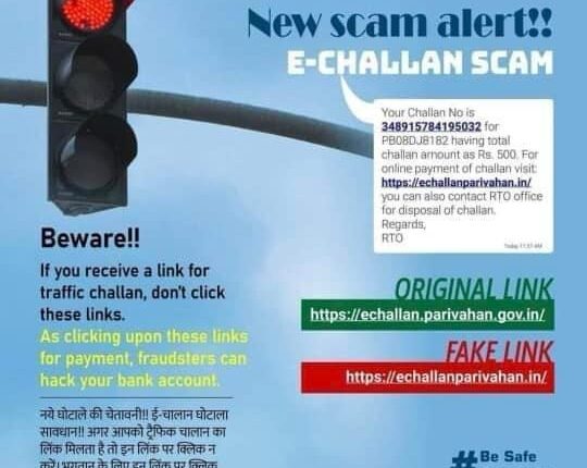 ई-चालान का फर्जी लिंक भेजकर हो रही साइबर ठगी से बचने हेतु यातायात पुलिस की साइबर एडवाइजरी