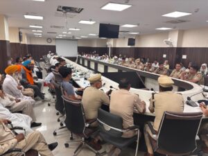 शांति व्यवस्था बनाए रखने के लिए धर्म गुरूओं, पार्षदों, सरपंचों व गणमान्य लोगों के साथ पुलिस उपायुक्त सैंट्रल उषा ने की गोष्ठी