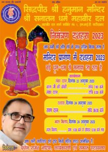 खबरेंNcr रिपोर्टर पंकज अरोड़ा फरीदाबाद: 21 अक्टूबर, सिद्धपीठ श्री हनुमान मंदिर 1 नंबर मार्किट में हर वर्ष की भांति इस बार भी दशहरा पर्व धूमधाम से मनाया जाएगा।