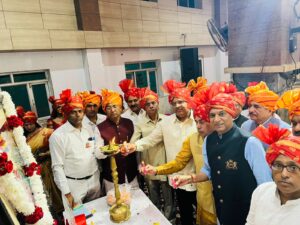 पूर्व उद्योग मंत्री विपुल गोयल ने मंच से संबोधित करते हुए सबसे पहले आयोजनकर्ताओं को सफल कार्यक्रम के लिए बधाई देते हुए कहा की हम सभी ऐसे क्षत्रिय राजा के वंशज है जिन्होंने हमारे वैश्य समाज को विश्व में पहचान देने का काम किया। पूर्व मंत्री ने कहा कि महाराजा अग्रसेन ने जो पांच हजार साल पहले एक ईट और एक रुपया” का समाजवादी सिद्धांत का संदेश उनके वैश्य समाज को दिया था आज भी समाज उसका पालन कर रहा है।