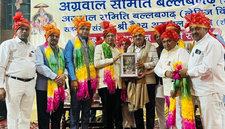 खबरेंNcr रिपोर्टेर पंकज अरोड़ा फरीदाबाद: 29 अक्टूबर, महाराजा अग्रसेन की 5147 वीं जयंती के उपलक्ष्य में अग्रवाल समिति बल्लभगढ़ द्वारा चावला कॉलोनी में स्थित अग्रसेन भवन में एक भव्य समारोह का आयोजन किया गया जिसमें पूर्व उद्योग मंत्री विपुल गोयल द्वारा बतौर मुख्यातिथि शिरकत की। इस मोके पर विश्वप्रसिद्ध कवियों ने भी अपनी कविताएं पेश करके लोगों का महाराजा अग्रसेन के दिखाए मार्ग पर चलने का सन्देश देने का काम किया।