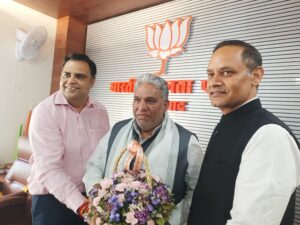 पंकज अरोड़ा फरीदाबाद: हरियाणा सरकार में कैबिनेट मंत्री (पंचायत एवं खनन मंत्री) कृष्णलाल पंवार का आज भाजपा जिला कार्यालय अटल कमल पर पहुँचने पर नव नियुक्त भाजपा फरीदाबाद जिला अध्यक्ष पंकज पूजन रामपाल व बल्लबगढ़ जिला अध्यक्ष सोहनपाल सिंह ने पुष्पगुच्छ देकर स्वागत किया और उन्हें ओलंपिक महासंघ का महासचिव बनाये जाने पर बधाई एवं शुभकामनाएं दीं।