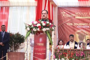 मानव रचना में 2,150 विद्यार्थियों को डिग्रियाँ प्रदान; केंद्रीय मंत्री जे.पी. नड्डा ने एम्स की संख्या 6 से बढ़कर 23 होने का किया उल्लेख