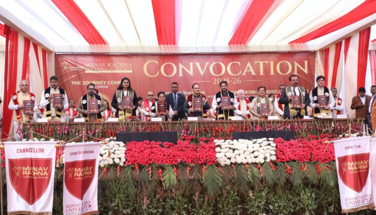 पंकज अरोड़ा की रिपोर्ट/फरीदाबाद, 7 फरवरी 2026: मानव रचना विश्वविद्यालय (एमआरयू) तथा मानव रचना इंटरनेशनल इंस्टीट्यूट ऑफ रिसर्च एंड स्टडीज़ (एमआरआईआईआरएस) का दीक्षांत समारोह 2025–26 शैक्षणिक उपलब्धियों का एक महत्वपूर्ण अवसर रहा, जिसमें स्नातक, स्नातकोत्तर एवं शोध कार्यक्रमों के अंतर्गत कुल 2,150 विद्यार्थियों को उपाधियाँ प्रदान की गईं। मानव रचना परिसर में आयोजित इस समारोह में केंद्रीय स्वास्थ्य एवं परिवार कल्याण तथा रसायन एवं उर्वरक मंत्री जगत प्रकाश नड्डा मुख्य अतिथि के रूप में उपस्थित रहे।