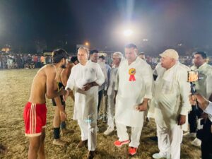 विजय प्रताप ने खिलाडिय़ों की हौसलाफजाई करते हुए कहा कि किसी भी खेल में हार जीत दोनों महत्वपूर्ण होते हैं। हार हमें कुछ सिखाकर जाती है, वहीं जीतने के बाद हमें अति उत्साह में नहीं आना चाहिए। उन्होंने कहा कि कबड्डी हमारी सांस्कृतिक धरोहर है और इसे हमको संभालकर रखना होगा। आज के समय में इंडोर गेम्स का ट्रेंड बढ़ रहा है, बावजूद इसके आउटडोर गेम्स की अपनी महत्ता है। सुंदर आयोजन के लिए उन्होंने आयोजन समिति को बधाई दी। उन्होंने कहा कि स्टेडियम बहुत पुराना है । स्टेडियम की जर्जर होना पीड़ा दायक बात है विधायक से चाहता हूं स्टेडियम का पुर्ननिर्माण करवाएंगे। 24 गांव नगर निगम में लिए है उसके बाद इन गांवों की हालत बदत्तर है गांवों का पैसा गया , जमीनें गई । कांग्रेस की सरकार आने पर प्लाट की स्कीम निरस्त होगी यह केवल एक गांव की नहीं बल्कि पुरे हरियाणा में स्कीम निरस्त होगी। खिलाडिय़ों के प्रोत्साहन के लिए जो सेवा हमारी लगाएंगे वह हम पुरी करेंगे।