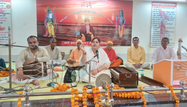 विदुषी भजनोपदेशका आचार्या अंजलि आर्या (करनाल) ने अपने भजनों व प्रवचन के माध्यम से कहा कि आधुनिकता की होड़ में हम संस्कृति, संस्कार व शिष्टाचार को भूलते जा रहे हैं। हमें आधुनिक बनना चाहिए, लेकिन अपने संस्कारों को नहीं भूलना चाहिए। महाऋषि दयानंद का मानना था कि बच्चों में शिष्टाचार व नैतिक संस्कारों का बीजारोपण तो अपने पारिवारिक माहौल में ही होता है। संस्कारों और मर्यादाओं की पालना करते हुए माता कौशल्या की आज्ञानुसार वनवास जाने के कारण ही प्रभु श्रीराम मर्यादा पुरुषोत्तम कहलाये। वेद आधारित संस्कारी, आदर्श महापुरुषों और देवों की जन्मस्थली भारत को शत् शत् नमन। आधुनिक भारत के निर्माता, वेदों के पुर्नउद्धारक और आर्य समाज के संस्थापक महर्षि दयानंद सरस्वती की 200 वीं जयंती पर उनके विचारों पर चलने का संकल्प लें और प्रेरणास्रोत के रूप में कहा: