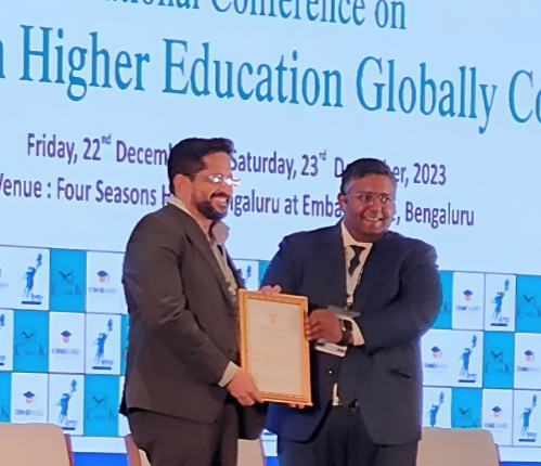 मानव रचना शैक्षणिक संस्थानों के अध्यक्ष डॉ. प्रशांत भल्ला को बैंगलोर में “भारतीय उच्च शिक्षा को वैश्विक स्तर पर प्रतिस्पर्धी बनाने” विषय पर आयोजित प्रतिष्ठित ईपीएसआई सम्मेलन में क्यूएस स्टार रेटिंग अवॉर्ड से सम्मानित किया गया है। शैक्षिक उत्कृष्टता को आगे बढ़ाने के लिए डॉ. भल्ला विभिन्न स्तरों पर प्रतिबद्धता के साथ जुटे हुए हैं। ईपीएसआई के कोषाध्यक्ष के तौर पर लंबे समय तक कार्य करते हुए उन्होंने विभिन्न पहलों के जरिए कई उल्लेखनीय कार्य किए हैं। सम्मेलन के दौरान शिक्षा उद्योग में उनके अद्वितीय योगदान के लिए उन्हें सोसायटी के वरिष्ठ उपाध्यक्ष की सम्मानित उपाधि भी दी गई।