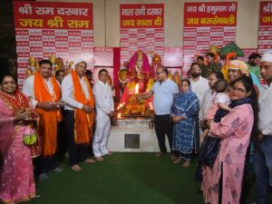 खबरेंNcr रिपोर्टर पंकज अरोड़ा फरीदाबाद: 15 अक्टूबर, सिद्धपीठ श्री हनुमान मंदिर एक नंबर मार्किट में नवरात्रों के आरंभ पर भव्य पूजा अर्चना का आयोजन किया गया। इस दौरान मुख्यातिथि के रूप में तिगांव से भाजपा विधायक राजेश नागर ने शिरकत की और महामाई की पूजा अर्चना की। इस मौके पर विधायक राजेश नागर ने कहा कि नवरात्रों का पर्व भारत में उत्सव के रूप में मनाया जाता है, इन नौ दिनों जहां माता रानी के विभिन्न रूपों की पूजा अर्चना होती है वहीं जागरण व चौकियों के माध्यम से भी मां की अराधना की जाती है।