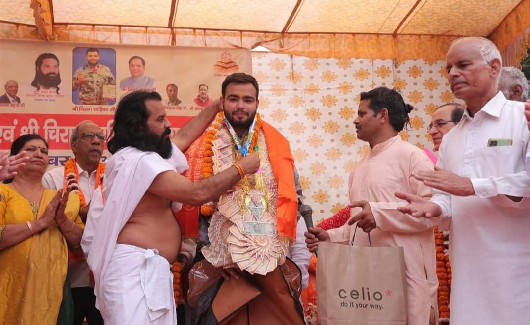 सेक्टर 49 सैनिक कॉलोनी से ग्राम पाली तक विजय यात्रा निकाली गई, कई जगह कारों को रोक कर चिराग का स्वागत किया गया। विजय यात्रा के संस्थान पहुंचने पर योगीराज ओमप्रकाश महाराज ने राष्ट्रीय खेल में रजत पदक प्राप्त करने पर चिराग को आशीर्वाद दिया एवं उनके दादा मुरलीधर जी, मां राशि एवं पिता मलय याज्ञिक को भी बधाई दी। उन्होंने चिराग को कड़ी मेहनत एवं पूर्ण लगन से नई ऊंचाइयां को छूने की प्रेरणा दी। उन्होंने चिराग को पुरस्कार स्वरूप 21000 रुपए नगद, 5 किलो शुद्ध देसी घी एवं अन्य उपहार भी दिए। साथ ही उन्होने कहा कि महर्षि स्वामी दयानन्द सरस्वती जी के 200 वीं जयन्ति के उपलक्ष्य में वैदिक यज्ञ एवं वेद प्रचार यात्रा अभियान मनुष्यता प्रदान करने के लिए प्रकृति संरक्षण के लिए व ईश्वर सानिध्य के लिए एक विशेष व आवश्यक प्रयास हैं। आर्य समाज के संस्थापक महर्षि स्वामी दयानन्द सरस्वती जी ने हमें यज्ञानुष्ठान, गायत्री पुनरश्चरण और प्रतिदिन यज्ञ हवन करने के लिए प्रेरित किया, इसलिए हम सब को भी राष्ट्र कल्याण और अपने और अपने परिवार के कल्याण के लिए प्रतिदिन यज्ञ, हवन करना चाहिए। प्रभु से प्रार्थना करते है यह महान कार्य निर्विग्न पूर्ण हो ,और इस वेद प्रचार, यज्ञ यात्रा में जो सहयोगी सेवा कर रहे है प्रभु सबको शक्ति दे, सामर्थ्य दे।