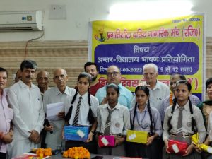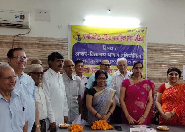जिसमें वरिष्ठ नागरिकों एवं स्कूल के बच्चों द्वारा हिंदी भाषा को सर्वोत्तम बताया एवं इसका प्रचार एवं प्रसार करने का आग्रह किया।