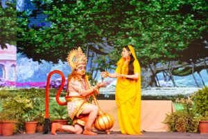 श्री श्रद्धा रामलीला कमेटी के मंचन पर सीता द्वारा हनुमान को चूड़ामणि देना व विभीषण का राम की शरण में आना