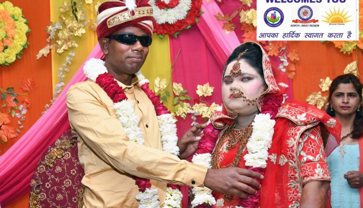 खबरेंNcr रिपोर्टर: पंकज अरोड़ा, फरीदाबाद: 20 मार्च, अग्रणि सामाजिक संस्था महावीर इंटरनेशनल सोशल फाउंडेशन के द्वारा एक अनोखी शादी का आयोजन किया गया इस शादी में दूल्हा दुल्हन और लगभग सभी बाराती दृष्टि बाधित थे.