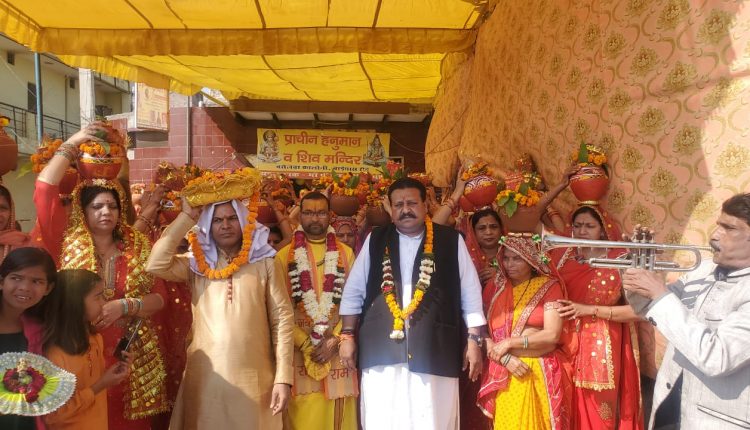फरीदाबाद: 23 नवंबर, मां पीताम्बरा सिद्ध पीठ मन्दिर बसेलवा कालोनी बाई पास रोड ओल्ड फरीदाबाद मे आयोजित श्रीराम कथा के प्रथम दिवस कलश यात्रा मे बतौर मुख्य अतिथी पहुंचे पं सुरेन्द्र शर्मा बबली राष्ट्रीय अध्यक्ष अखिल भारतीय ब्राह्मण सभा पं सुरेन्द्र बबली ने व्यास श्रद्धेय पं राजेन्द्र मिश्र जी महाराज व ग्रन्थ पूजन कर कलश यात्रा का शुभारंभ किया