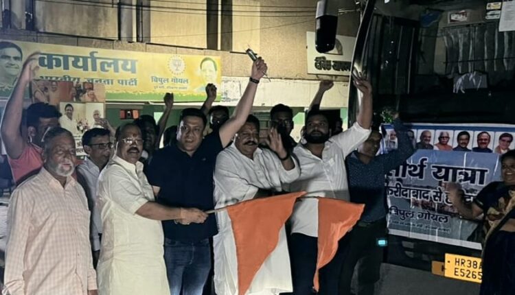 ख़बरें NCR, रिपोर्टर पंकज अरोड़ा, फ़रीदाबाद; 04 जून, साथियों पिछले 9 वर्षो से चली आ रही जनता की सेवा आज भी निरंतर जारी है पूर्व उद्योग मंत्री विपुल गोयल की तरफ से ऐसा कहना है युवा भाजपा नेता अमन गोयल का जोकि भतीजे है पूर्व उद्योग मंत्री विपुल गोयल के। कल सेक्टर 16 सागर सिनेमा कार्यालय से पूर्व मंत्री के भतीजे अमन गोयल ने दो बसों को झंडी दिखाकर हरिद्वार के लिए रवाना किया। इस पुण्य के कार्य मे उनके साथ ओल्ड फ़रीदाबाद विधानसभा से कई वरिष्ठ लोग भी साथ में मौजूद रहे।