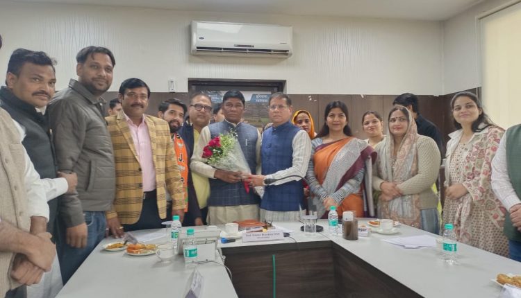 जिला अध्यक्ष राजेश भाटिया ने जिला परिषद फरीदाबाद के नवनिर्वाचित प्रेजिडेंट विजय सिंह और वाइस प्रेसिडेंट धर्म चौधरी को डीसी कार्यालय में फूलो का गुलदस्ता देते हुए हार्दिक बधाई एवं शुभकामनाएं दी।