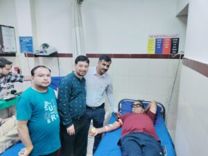 खबरेंNcr रिपोर्टर पंकज अरोड़ा फरीदाबाद: 30 जुलाई, एपेक्स मल्टीस्पेशलिटी हॉस्पिटल एवं लेप्रोस्कॉपी हॉस्पिटल के संयुक्त तत्वाधान में रक्तदान शिविर का आयोजन किया गया। शिविर में उद्घाटन हरियाणा महिला आयोग की चेयरपर्सन रेनू भाटिया ने बतौर मुख्यातिथि के रूप में किया। वहीं शिविर में विशिष्ट अतिथि के रूप में सिद्ध पीठ हनुमान मंदिर मार्केट नंबर 1 एवं ब्यापार मंडल फरीदाबाद के प्रधान राजेश भाटिया मौजूद रहे।
