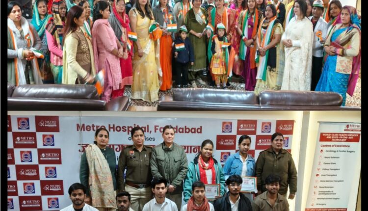 पंकज अरोड़ा की रिपोर्ट/फरीदाबाद: 24 जनवरी 2026: 26 जनवरी गणतंत्र दिवस के उपलक्ष्य में ह्यूमन लीगल ऐड एंड क्राइम कंट्रोल ऑर्गनाइजेशन ने दो दिन पूर्व ही उत्साहपूर्ण कार्यक्रम का आयोजन किया। मेट्रो हॉस्पिटल कैंसर इंस्टीट्यूट के सभागार में आयोजित इस समारोह में फरीदाबाद राजेश चेची, डीसीपी (जीआरपी) ओल्ड फरीदाबाद मुख्य अतिथि रहे, जबकि महिला थाना की सेक्टर 16 की उषा रानी एसएचओ और सेक्टर 21 एन. आई. टी. महिला थाना की एसएचओ माया विशेष अतिथि के रूप में उपस्थित हुईं। कार्यक्रम में फरीदाबाद नगर निगम वार्ड 32 की पार्षद शेफाली सिंघला भी शिरकत करने पहुंचीं। संस्था के सदस्यों ने राष्ट्रगान के साथ कार्यक्रम का शुभारंभ किया और देशभक्ति गीतों, नृत्य प्रस्तुतियों के माध्यम से स्वतंत्रता संग्राम के वीरों को नमन किया।