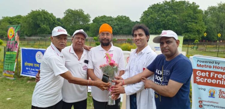 खबरेंNcr रिपोर्टर पंकज अरोड़ा फरीदाबाद: 21 जून, पूरे भारत में विश्व योग दिवस मनाया जा रहा है वंही इस अवसर पर रोज गार्डन एनआईटी फरीदाबाद में भी योग दिवस के कार्यक्रम का आयोजन किया गया जिसमें समाजसेवी सरदार परविंदर सिंह को उनके द्वारा रोज गार्डन में जो सफाई अभियान चलाकर उसे साफ सुथरा किया उसके लिए उन्हें पुष्पगुच्छ भेंट कर सम्मानित किया।