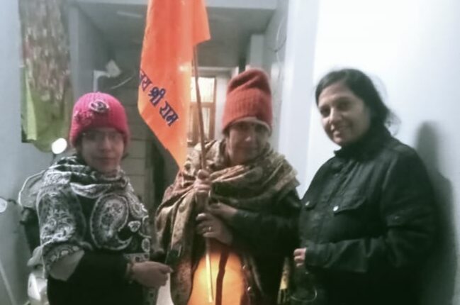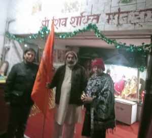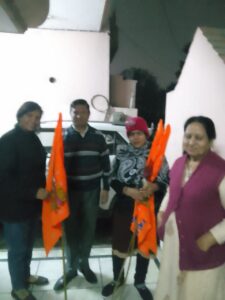 शिव शक्ति मंदिर ने घर घर जाकर वितरित किए भगवा झंडे