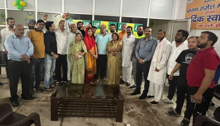 जननायक जनता पार्टी के जिला अध्यक्ष राजेश भाटिया के साथ बैठक में वरिष्ठ साथी बेगराज नागर हातिम आधाना महेश मणि हरीराम किरार नंदराम पाहिल सतीश फोगाट करामत अली गजेंद्र भड़ाना लतीफ कुरेशी परविंदर सिंह सीमा सितोरिया संदीप पुरष भान गगन अरोड़ा रिंकल भाटिया अरविंद शर्मा कृष्ण कपासिया अमर बजाज राहुल निपुन जगदीश नेता सुदेश ग्रोवर विशाल भाटिया वीरेंद्र सिसोदिया सनी भाटिया विकास सिंह व अन्य आप पार्टी कार्यकर्ता शामिल थे।