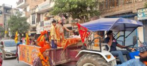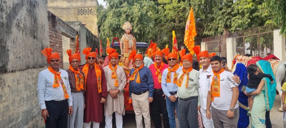 नाचते गाते निकाली गई। ढोल नगाड़ों व बैंड बाजा के साथ शोभा यात्रा में सैकड़ो लोग शमिल हुए। वाद्ययंत्रों व श्रद्धालुओं द्वारा लगाए जा रहे जय श्रीराम, जय हनुमान के गगनभेदी जयघोष से वातावरण गूंजायमान हो उठा। शोभायात्रा में शामिल तमाम देवी-देवताओं की मनोरम झांकियां लोगों को आकर्षित कर रही थी। जगह जगह लोगों ने सभी झांकियों व श्रद्धालुओं का स्वागत किया। दैनिक शेरे हरियाणा के संपादक अमरनाथ बागी, सी दास ग्रुप के बलदेव राज भाटिया व अन्य कई विशिष्ट जनों ने शोभा यात्रा का स्वागत किया।