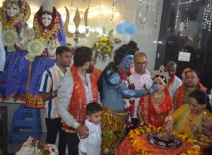 पंकज अरोड़ा की रिपोर्ट फरीदाबाद: सिद्धपीठ श्री हनुमान मंदिर मार्केट नंबर 1 में महाशिवरात्रि का पर्व धूमधाम से मनाया गया। इस दौरान सुबह सवेरे से ही मंदिर में पूजा अर्चना करने वाले भक्तों की लम्बी-लम्बी कतारें लगनी शुरू हो गई, जैसे-जैसे दिन चढ़ता गया, श्रद्धालुओं का तांता भी बढ़ता गया। तिकोना पार्क स्थित सिद्धपीठ श्री महारानी वैष्णो देवी मंदिर से मंदिर के प्रधान जगदीश भाटिया की अध्यक्षत्ता में भगवान भोले शंकर की बारात धूमधाम से निकली, जोकि बाजारों में ढोल नगाड़ों के साथ गुजरती हुई सिद्धपीठ श्री हनुमान मंदिर मार्किट नं- 1, के प्रांगण में पहुंचे, जहां भगवान शिव शंकर और माता पार्वती ने एक दूसरे को वरमाला पहनाकर विधिवत रुप से विवाह सम्पन्न किया गया। इस धार्मिक आयोजन को देख लोग भावुक हो गए।