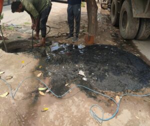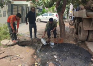 हालांकि खबर लिखे जाने के बाद सीवरेज की सफाई का काम जारी था