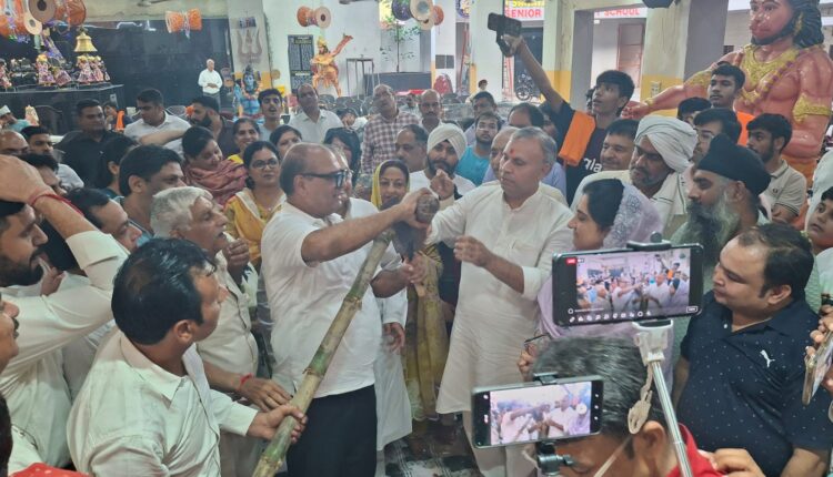 पंकज अरोड़ा की रिपोर्ट फरीदाबाद: 15 सितंबर, सिद्धपीठ श्री हनुमान मंदिर मार्केट नंबर-एक में दशहरा पर्व बनाने के लिए पुतलों का बांस काटकर विधिवत रुप से शुभारंभ किया गया। इस मौके पर मंदिर के मुख्य अतिथि विजय प्रताप सिंह, विशिष्ट अतिथि रेणुका विजय प्रताप सिंह व प्रधान राजेश भाटिया द्वारा पूजा अर्चना की गई तत्पश्चात पास काट कर विधिवत रूप से रावण के पुतले बनाने की शुरूआत की गई।