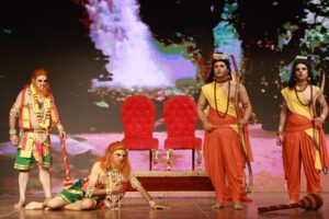 इस मंच पर समय समय पर बेक ग्राउंड म्यूजिक की भूमिका भी शानदार रही है। श्रीराम द्वारा हनुमान को सीता की खोज में भेजना ( सिया की खोज में निकल पड़े कपि सारे ) व अशोक वाटिका में हनुमान जी देखते हैं कि रावण कैसे सीता माता को परेशान कर रहे हैं, तब हनुमान सीता माता से भेंट कर उन्हें विश्वास दिलाते है कि अब श्रीराम और उनकी सेना शीघ्र ही लंका पर धावा बोल देंगे।