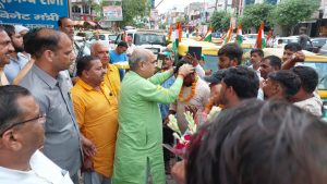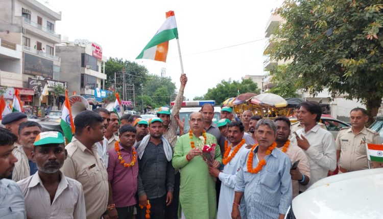 फरीदाबाद: 14 अगस्त, देश के प्रधानमंत्री नरेंद्र मोदी के हर घर तिरंगा अभियान को सफल बनाने के लिए आज फरीदाबाद में ऑटो चालकों द्वारा जिले के बीके अस्पताल से ऑटो तिरंगा यात्रा शुरू करते हुए बल्लभगढ़ अंबेडकर चौक होते हुए सेक्टर 3 बल्लभगढ़ के बाद सेक्टर 8 प्रदेश के परिवहन मंत्री मूलचंद शर्मा के कार्यालय पर समापन किया। ऑटो तिरंगा यात्रा का नेतृत्व कर रहे शेर मोहम्मद, शहाबुद्दीन, नेपाल राघव, संजय बॉबी और फखरुद्दीन ने बताया कि आज देश का सौभाग्य है कि उन्हें नरेंद्र मोदी जैसे देश के प्रधानमंत्री मिले हैं जिन्होंने राष्ट्रीय ध्वज के सम्मान को बढ़ाने के लिए अभियान छेड़ा हुआ है जिस अभियान में देश का हर नागरिक बढ़-चढ़कर भाग ले रहा है और लोगों को राष्ट्रीय ध्वज के प्रति जागरुक कर रहा है प्रदेश के परिवहन मंत्री मूलचंद शर्मा ने सभी ऑटो चालकों का सेक्टर 8 कार्यालय पहुंचने पर फूल मालाएं पहनाकर और बुक्का देकर के स्वागत किया। परिवहन मंत्री श्री शर्मा ने इस अवसर पर सभी ऑटो चालकों को संबोधित करते हुए पहले 15 अगस्त की शुभकामनाएं दी और कहा कि आज देश की आन बान शान तिरंगा की खातिर देश का नौजवान सीमाओं पर हम सब की सुरक्षा के लिए तैनात खड़ा है यदि देश की सीमाएं सुरक्षित रहेगी तो हम सब सुरक्षित रहेंगे इसलिए सबसे देश और देश का तिरंगा है।