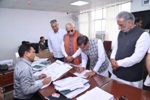 पंकज अरोड़ा की रिपोर्ट फरीदाबाद: 09 सितंबर, तिगांव विधानसभा क्षेत्र से भाजपा के घोषित उम्मीदवार राजेश नागर ने आज केंद्रीय मंत्रियों मनोहर लाल एवं कृष्णपाल गुर्जर की मौजूदगी में नामांकन दाखिल किया। नागर ने दोनों वरिष्ठ नेताओं का आशीर्वाद लिया और जनता के सहयोग से सीट जीतकर भाजपा की झोली में डालने की बात कही।
