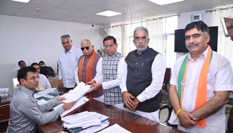 पंकज अरोड़ा की रिपोर्ट फरीदाबाद: 09 सितंबर, तिगांव विधानसभा क्षेत्र से भाजपा के घोषित उम्मीदवार राजेश नागर ने आज केंद्रीय मंत्रियों मनोहर लाल एवं कृष्णपाल गुर्जर की मौजूदगी में नामांकन दाखिल किया। नागर ने दोनों वरिष्ठ नेताओं का आशीर्वाद लिया और जनता के सहयोग से सीट जीतकर भाजपा की झोली में डालने की बात कही।