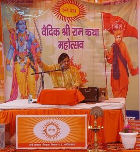 खबरेंNcr रिपोर्टर पंकज अरोड़ा फ़रीदाबाद: 05 अप्रैल, आर्य समाज (सेंट्रल), सैक्टर 15 फरीदाबाद के 35वें स्थापना दिवस के उपलक्ष में 5 से 11 अप्रेल तक चलने वाले 7 दिवसीय कार्यक्रम के शुभारंभ पर विदुशी बहन अंजली आर्या जी द्वारा वैदिक रामकथा ने अपने प्रवचन और मधुर भजनों के माध्यम से मर्यादा पुरुषोत्तम श्री राम के प्रेरक जीवन की कथा द्वारा उनके आदर्शों को जीवन में आत्मसात करने का अवाहन किया। प्रभु भगवान श्री राम हमारे आदर्श है उनका आदर्श चरित्र हमें अपने कर्तव्यों का बोध कराता है कि हम भी उनके जैसा बनें और पुत्र, भाई, पति की तरह अपने कर्तव्यों का पालन करें क्योंकि राम पग-पग पर हमारा मार्ग दर्शन करते हैं। वेद अनुसार जीवन यापन ही हमारा उद्देश्य होना चाहिए।
