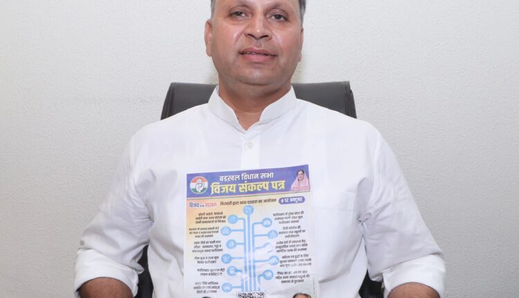 पंकज अरोड़ा की रिपोर्ट फरीदाबाद, 01 अक्तूबर, बडख़ल विधानसभा क्षेत्र से कांग्रेस प्रत्याशी विजय प्रताप सिंह ने मंगलवार को विधानसभा चुनाव को लेकर अपना विजय संकल्प पत्र जारी किया। जिसमें सर्वप्रथम बिरादरी द्वारा भव्य दशहरा पर्व का आयोजन धूमधाम से किए जाने को प्रमुखता दी गई। इसके अलावा फैमिली आईडी, प्रोपर्टी आईडी व अन्य पोर्टलों के नाम पर मचाई जा रही लूट से जनता को मुक्ति दिलवाना, बडख़ल में प्रवासी तथा पंजाबी भवन की स्थापना एवं बडख़ल को सीवरमुक्त, गड्ढामुक्त, जलभराव तथा कचरा मुक्त स्वच्छ फरीदाबाद बनाना शामिल है। जारी किए गए विजय संकल्प पत्र में फरीदाबाद वासियों को टोल एवं जाम से मुक्ति दिलवाना, फरीदाबाद से गुरुग्राम तक मेट्रो की कनेक्टिविटी, नाहर सिंह स्टेडियम का नवनिर्माण एवं स्पोर्टस सिटी की स्थापना किया जाना शामिल है।