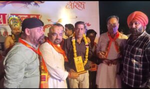 युवा दशहरा क्लब के सदस्यों ने मंच पर पंकज अरोड़ा (पत्रकार ) को सम्मानित कर अपने फर्ज निभाया।