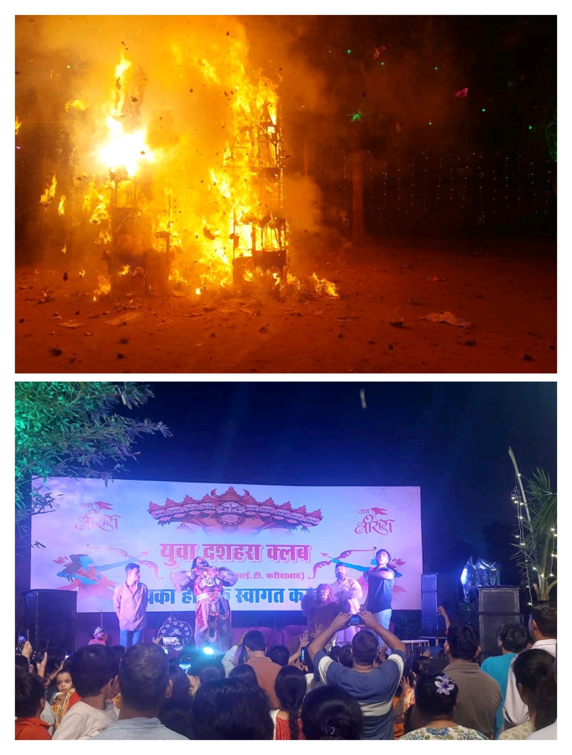 पंकज अरोड़ा की रिपोर्ट/फरीदाबाद: युवा दशहरा क्लब, 3सी ब्लॉक के युवाओं द्वारा लंका दहन से पहले विभिन्न मनमोहक झांकियों के साथ भव्य शोभा यात्रा निकाली गई जिसमें व्रतधारी युवाओं ने हनुमान के मुकुट वाली मूर्ति का स्वरूप धारण कर भाग लिया। यह युवा दशहरे से पहले 40 दिन तक ब्रह्मचर्य धारण कर धर और व्यवसाय त्यागकर मंदिर में डेरा जमाते हैं। वह व्रत रखकर एक समय खाना खाते हैं जमीन पर सोते हैं, जिनसे श्रद्धालु मन्नत मांगते हैं।